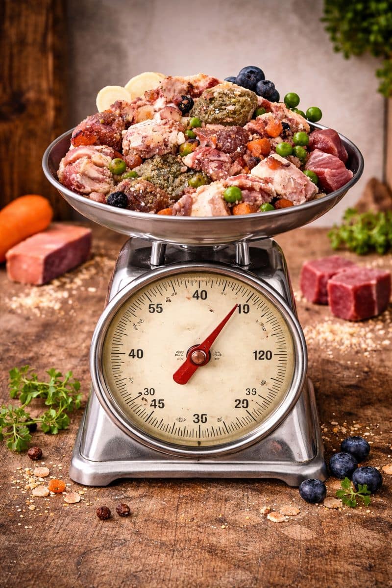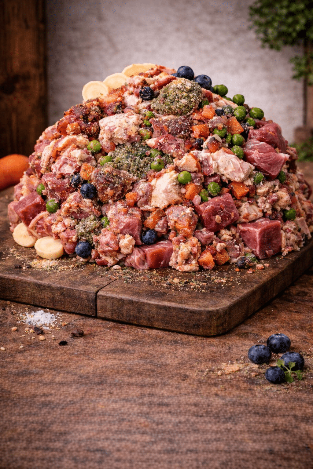 Frossen BARF-menu med oksekød og grøntsager.