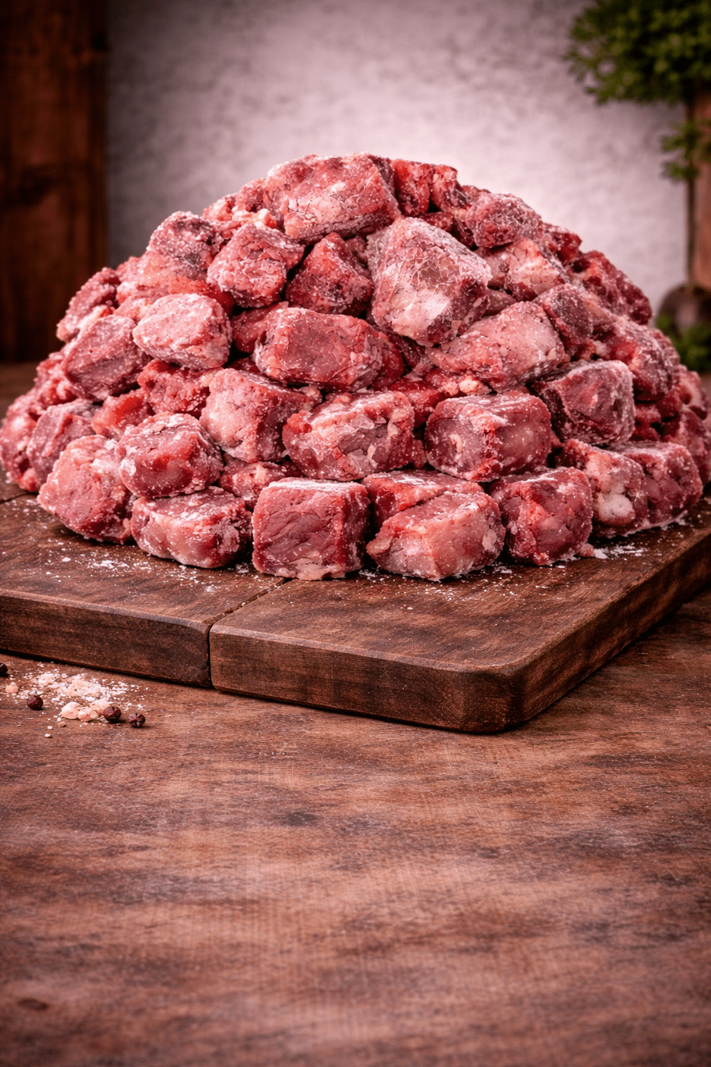 Rå, udskåret og frossent vildtkød i tern.